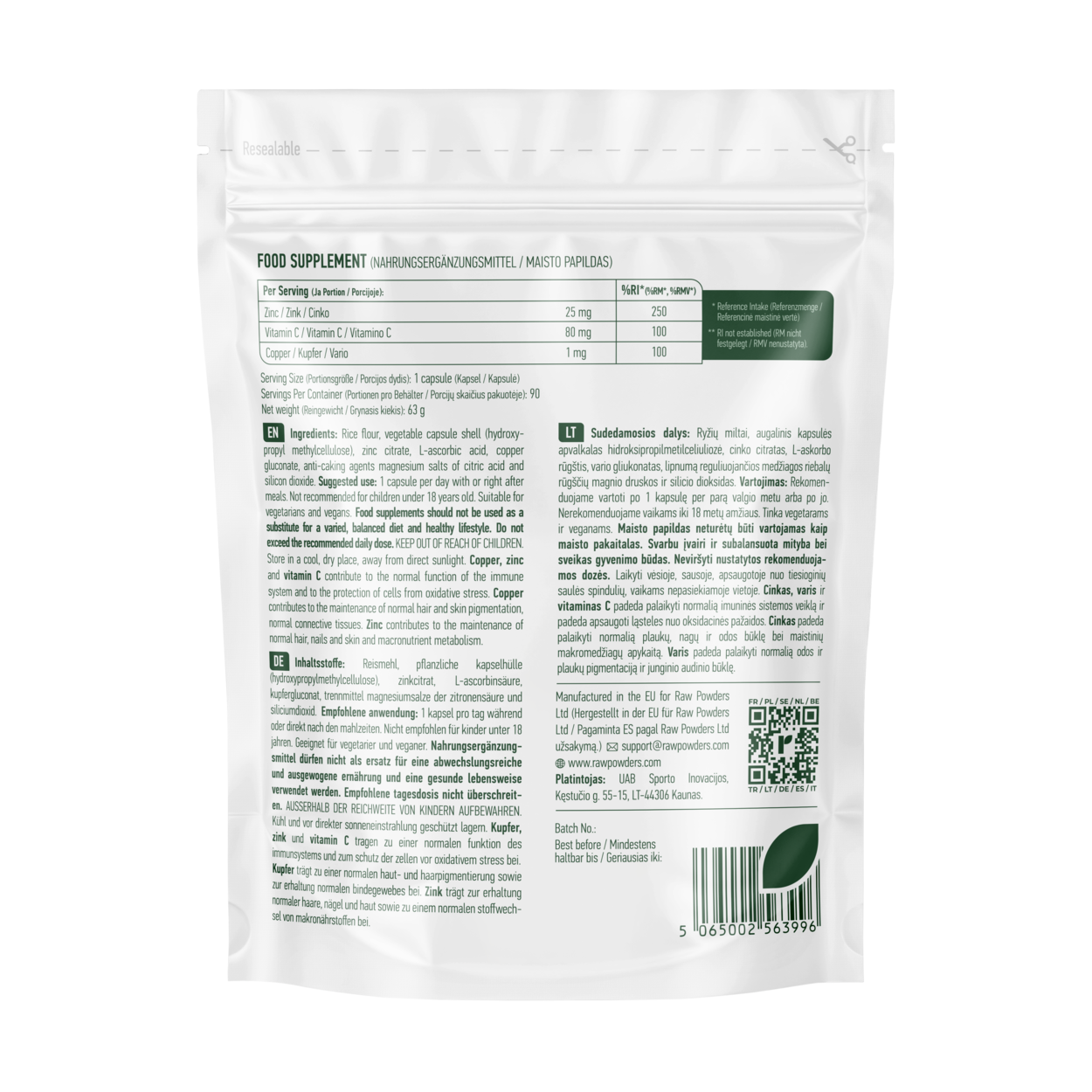 | Raw Powders Cinkas + Vitaminas C + Varis – maisto papildas | ||
