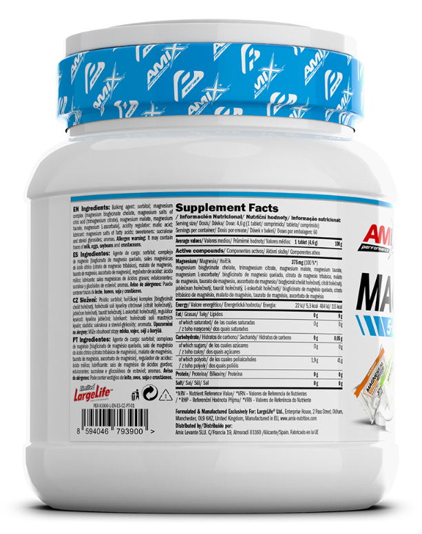 Amix Performance Magnesium 5-Complex Chewable panaudotos medžiagos: