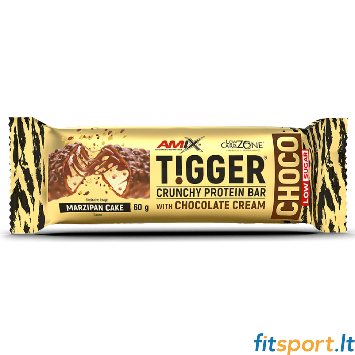 Amix Nutrition TiggerZero® Bar (marcipanų pyrago skonio) – baltymų batonėlis su saldikliais, su šokoladu ir žemės riešutais