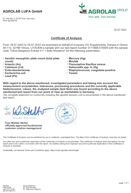 ✅Each capsule provides 450 mg. of a blend of citrus bergamot (Citrus bergamot) and beta-sitosterol for nutritional supplementation and cholesterol, heart and prostate support.