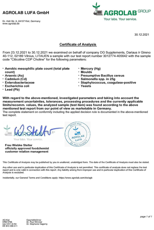 - ❓This is citicoline – CDP choline (Cytidine diphosphate choline), a compound found naturally in the body and widely used in dietary supplements. Citicoline is an important component of phospholipids, especially phosphatidylcholine, which is important for the structure of cell membranes. This compound is also a source of choline and cytidine, which are involved in various biological processes in the body.
