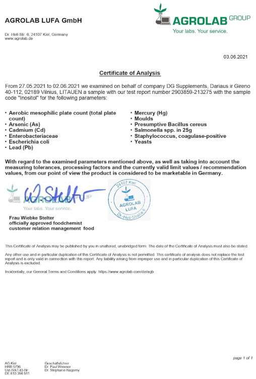 Rigorous purity, composition, and safety tests have been conducted to ensure a high-quality inositol dietary supplement.