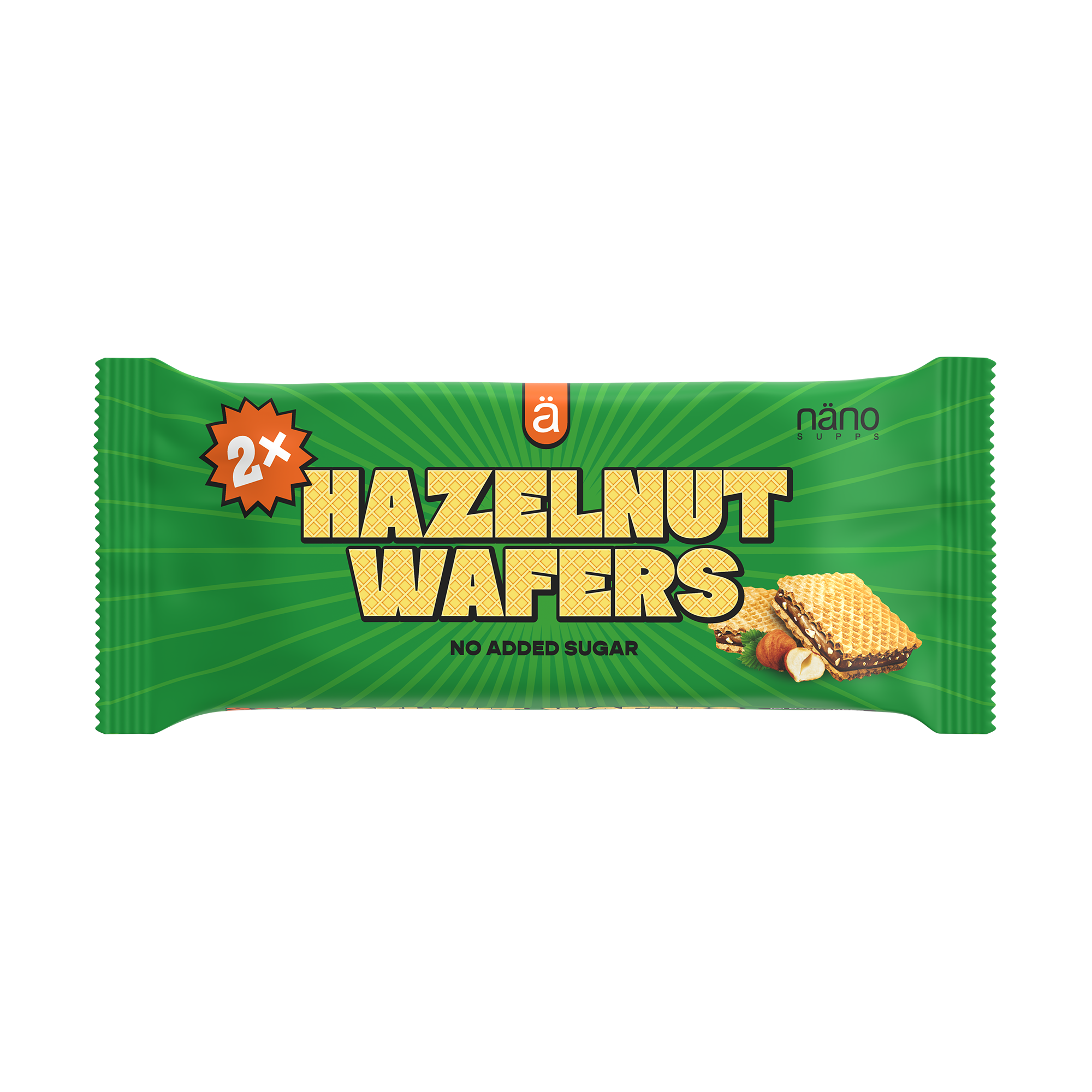 A delicious hazelnut treat - a great choice for travel and small everyday moments with Nano Supps Hazelnut Wafers! Two crispy wafers with a soft hazelnut and almond cream. Made with sweeteners, no added sugar - so you can enjoy without a guilty conscience.
