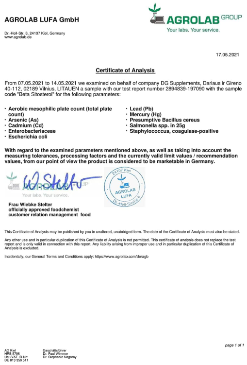 - ❓Tai natūralus augalinės kilmės sterolis, dažniausiai randamas sėklose, riešutuose, augaliniuose aliejuose ir daržovėse. Tai viena iš pagrindinių fitosterolių rūšių, kurie struktūriškai panašūs į cholesterolį.