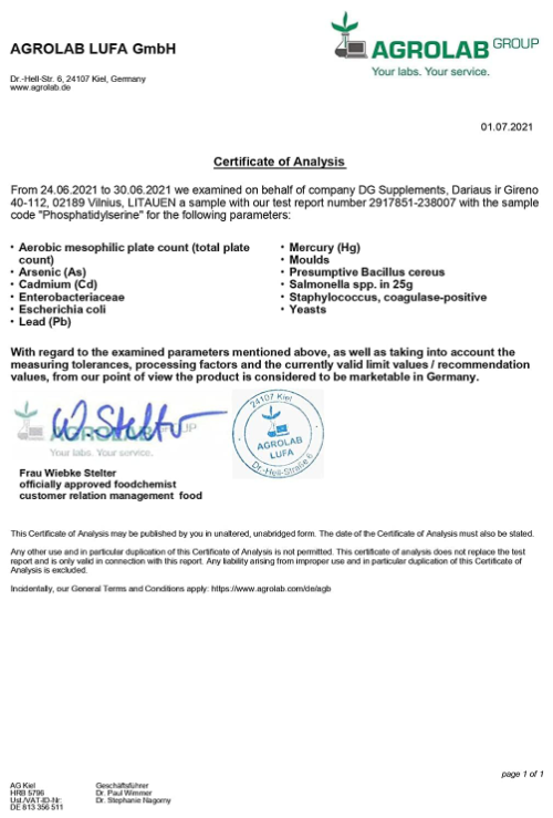 - ❓Tai yra maisto papildas, kuriame yra fosfatidilserinas – natūrali fosfolipidų grupės medžiaga, svarbi smegenų ląstelių membranoms. Fosfatidilserinas vertinamas dėl savo vaidmens palaikant kognityvinę funkciją, atmintį ir nervų sistemos veiklą.