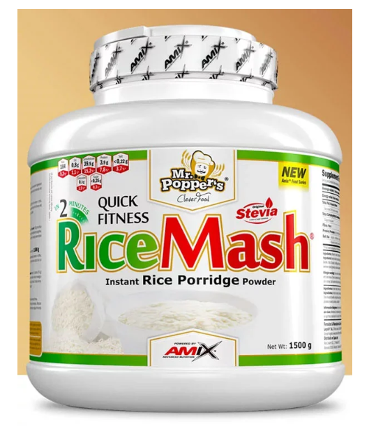 Amix Mr. Poppers RiceMash – tai aukštos kokybės ekstruduoti ir vėliau sumalti ryžiai, skirti paruošti nuostabią košę ar kaip puikus ingredientas kepant keksiukus, duoną, pyragaičius ir tortus. Jis taip pat yra puikus sriubų, padažų ir sultinių tirštiklis. Tai lengvai virškinamų angliavandenių, pasižyminčių mažu glikemijos indeksu, šaltinis, saldintas natūralia stevija ir praktiškai be cukraus. Mažas riebalų ir didelis skaidulų kiekis užtikrina ilgalaikį sotumo jausmą.