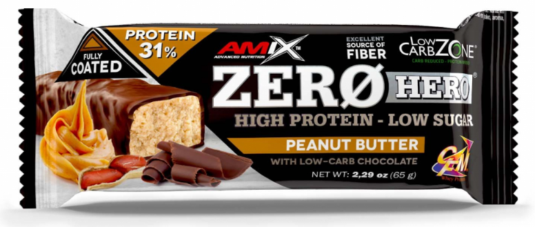 Sveikas gyvenimo būdas nebūtinai reiškia malonumų atsisakymą! Visiems smaližiams, norintiems rūpintis savo sveikata, Amix Nutrition pristato revoliuciją – baltymų batonėlį Zero Hero 31% Protein Bar. Šis unikalus produktas, kuriame beveik nėra cukraus, yra puiki alternatyva klasikiniams, kaloringiems užkandžiams. Zero Hero 31% Protein Bar išsiskiria savo gardžiu skoniu ir tekstūra.