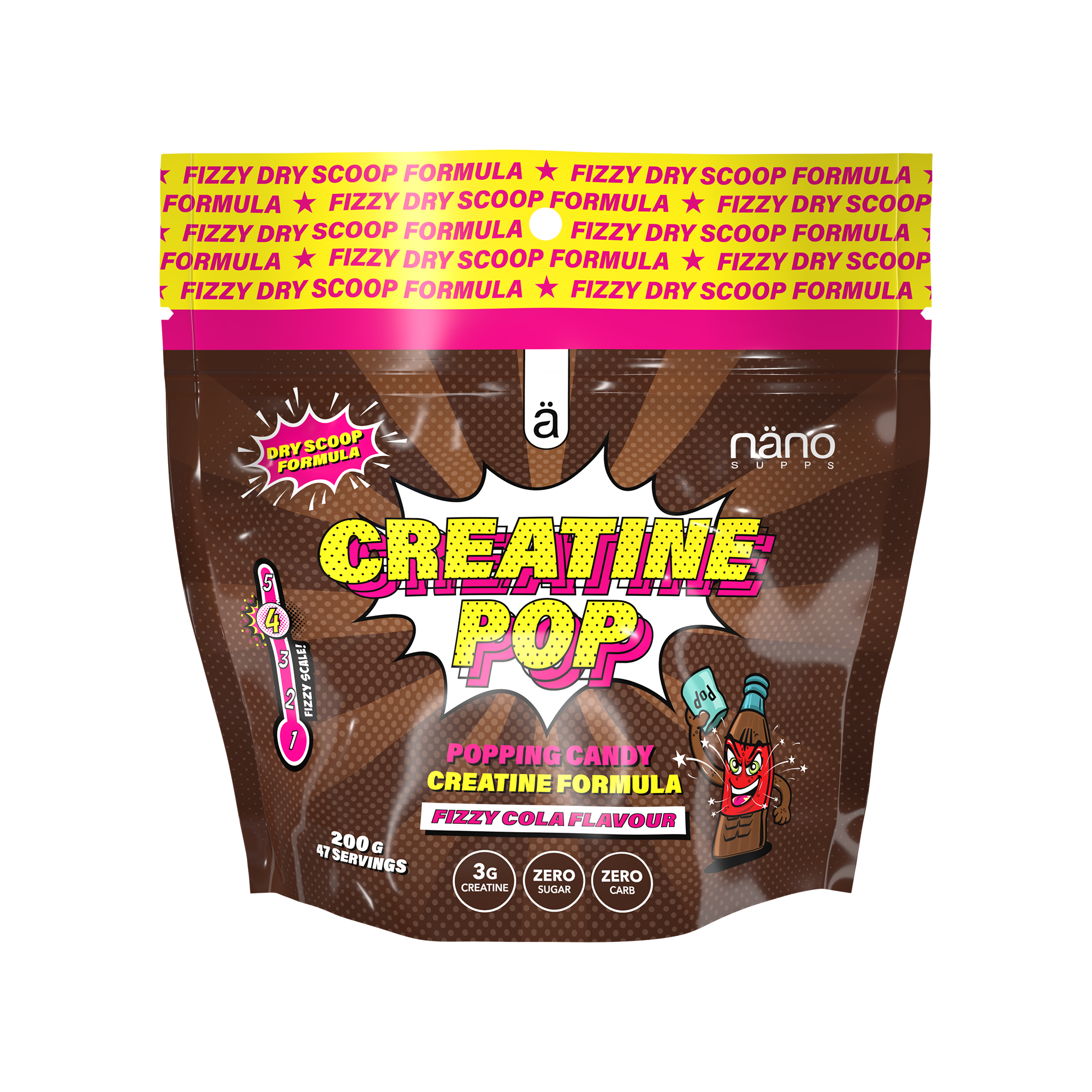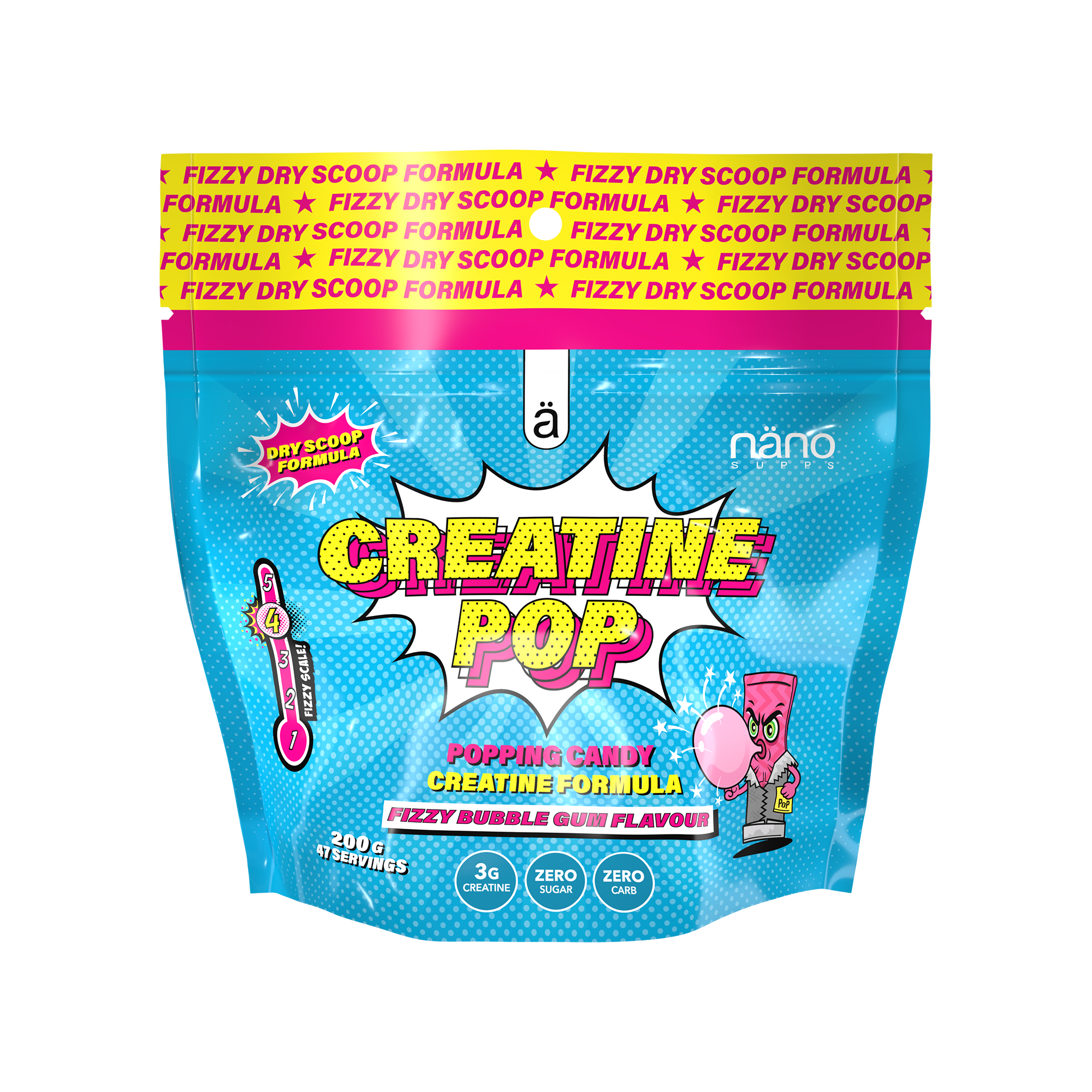 NanoSupps Creatine Pop – inovatyvus kreatinas su spragsinčia energija! Pamirškite įprastus miltelius – tai grynas kreatino monohidratas su spragsinčiais saldainių gabalėliais, kurie kiekvieną porciją paverčia ne tik veiksminga, bet ir išskirtine. Vartokite tiesiai į burną arba sumaišykite su šaltu vandeniu – pajuskite lengvą šnypštimą ir energijos pliūpsnį prieš treniruotę. Kiekvienoje porcijoje mažiau nei 1 kcal, be cukraus, be nereikalingų priedų – tik tai, ko reikia jūsų progresui.