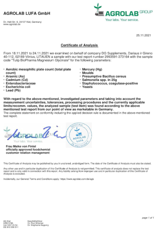 Tulip BioPharma Magnesium Glycinate – kas tai?