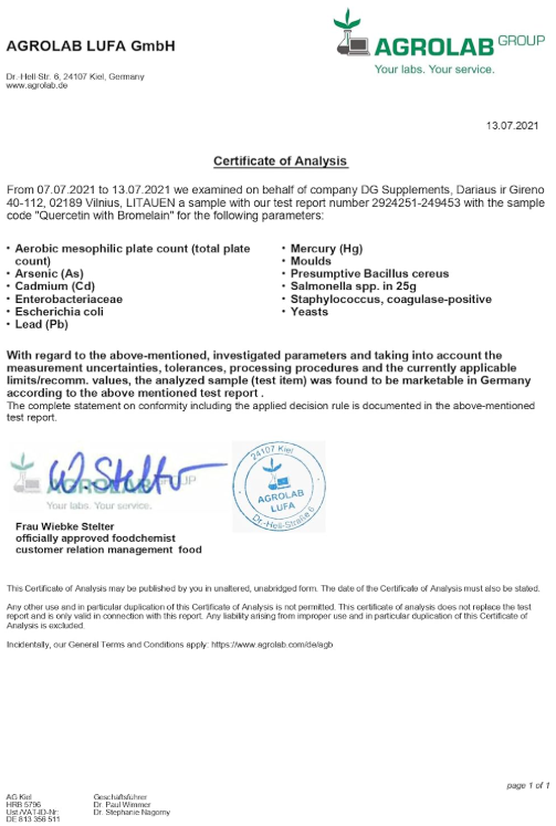 Quercetin with Bromelain, kvercetinas su bromelainu, imuninė sistema, immune support, antioksidantas, antioxidant, uždegimų mažinimas, inflammation support, alergijos, allergy support, ląstelių apsauga, cellular protection, prostate, prostata